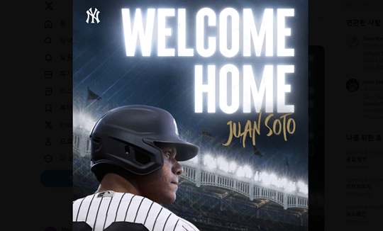 메이저리그(MLB) 뉴욕 양키스가 트레이드를 통해 샌디에이고 파드레스 외야수 후안 소토(25)를 영입했다. 다음은 양키스 구단이 12월 7일(한국 시간) 소토의 영입 소식과 함께 발표한 내용이다.