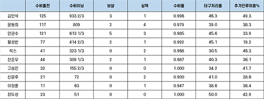 센터라인을 책임지는 중견수 역할도 여전히 ‘무주공산(無主空山)’인 셈이다. 올해로 프로 데뷔 2년째를 맞은 기대주 김민석도 롯데의 주전 중견수 후보다. 김민석은 2023년 루키 시즌에만 중견수로 붙박이 출전해 팀에서 가장 많은 수비이닝(933.2)을 소화하기도 했다. 젊은 나이에 풀타임 중견수 경험을 쌓은 건 훗날 값진 성장 동력이 될 가능성이 있다.