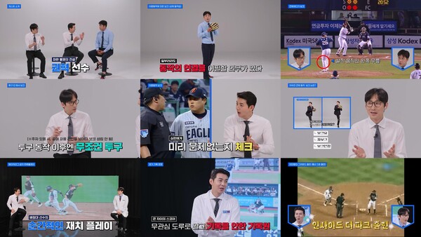 지난 2화 방송 이후 차우찬의 견제 동작에 대한 '보크 여부'를 두고 불거진 이용자 반응도 언급됐다. 이대형 해설위원은 "다리를 드는 시점이 아닌, 내리는 과정에서 엉덩이를 과하게 쓰면 보크가 될 수 있다"며 오해가 많았던 동작에 대한 판단 기준을 정리했다. 이를 통해 콘텐츠는 다양한 실제 장면을 통해 이중 동작 여부와 그 미세한 차이를 포착하며, 보크가 왜 선수와 심판 모두에게 어려운 규칙인지 명쾌하게 정리했다.