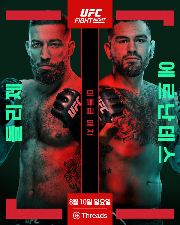‘UFC 파이트 나이트: 돌리제 vs 에르난데스’ 메인 카드는 오는 8월 10일 오전 8시부터 tvN SPORTS와 티빙(TVING)을 통해 생중계된다