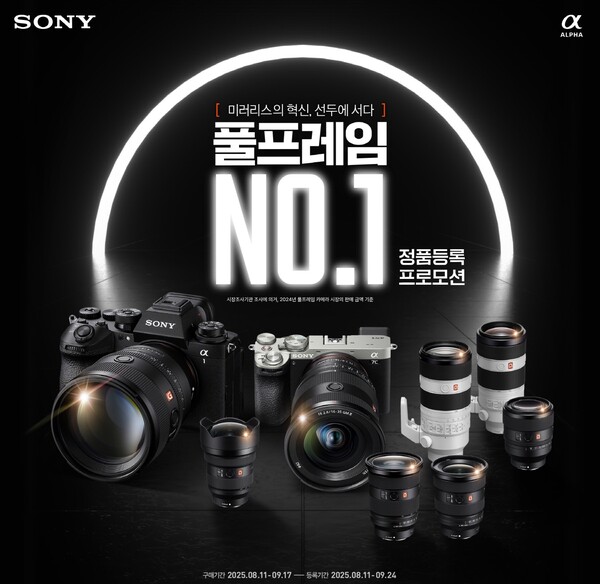 소니코리아가 알파 시리즈 카메라 6종 및 GM 렌즈 10종 등 풀프레임 No.1 정품등록 프로모션을 진행한다.