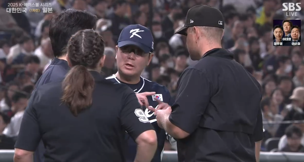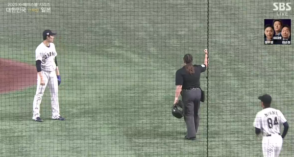 다만 류 감독의 어필에도 판정은 변하지 않았다. 이후 중계 화면 상에도 발 앞 마운드에 공이 맞는 장면이 나왔지만, 문현빈이 덕아웃으로 들어간 이후였다. 문현빈의 타구에 대해 아웃을 선언한 이날 주심 젠 파월은 메이저리그 최초의 여성 심판으로 이름을 알렸다. 지난 2024년 콜업되며 새 역사를 썼지만, 이번 한일전에서는 오심성 판정을 남겼다.